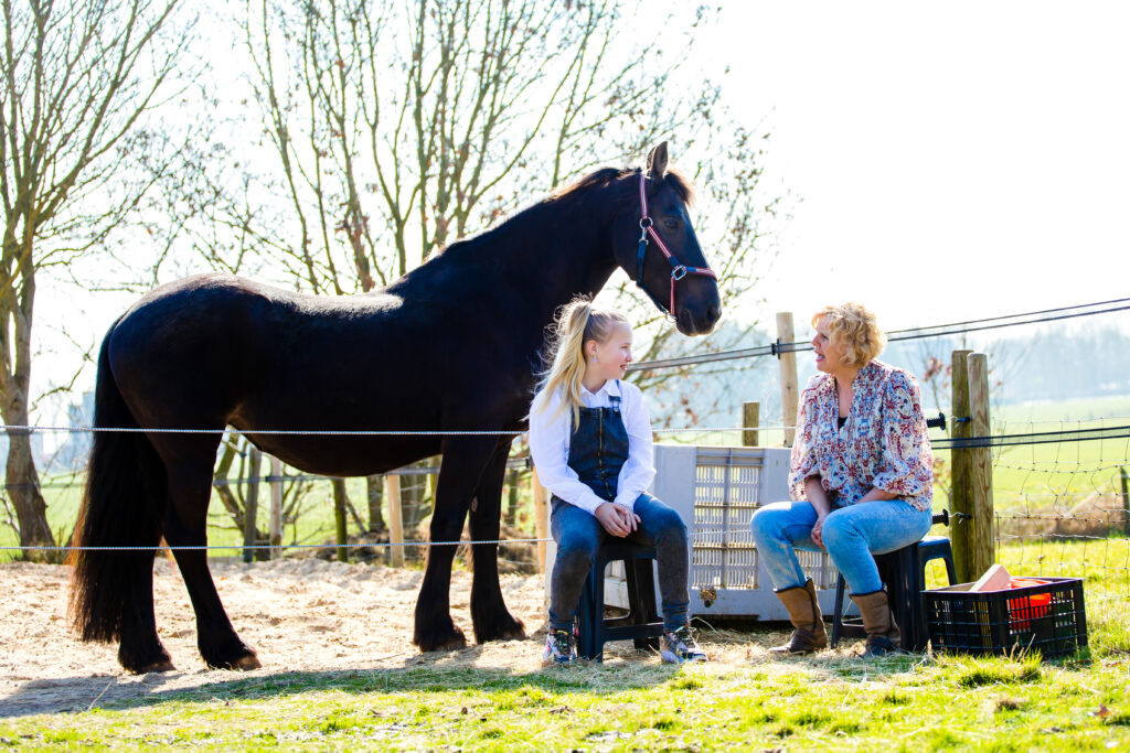 We starten met een intakegesprek. In dit gesprek bespreken we: Wat jou hulpvraag of thema is, wat je graag zou willen bereiken, hoe een sessie met of zonder paard eruit ziet en wat je kunt verwachten van het traject.