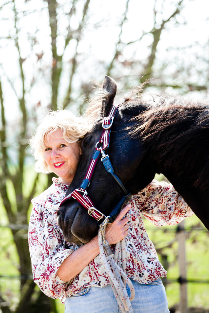 “Op donderdagochtend had ik een sessie met Inge Buis en het paard Bo. Mijn doel was om mijn angst voor paarden te overwinnen. Inge nam rustig de tijd, we begonnen met ademhalingsoefening. Bo stond op afstand, zodat ik rustig kon wennen. Op een gegeven moment kwam ze achter me staan en legde haar hoof om me heen. Inge gaf aan: “Ze wil je beschermen”- en dat voelde ik ook zo. Ik durfde Bo te aaien. Daarna volgende een intens moment waarin Bo allerlei bewegingen maakte die diepe emoties opriepen. Emoties die indirect te maken hadden met mijn angsten. Door mijn angst voor paarden te overwinnen, zette ik de eerste stap naar vertrouwen in mijn eigen kunnen. Bo spiegeld mijn gevoelens zonder woorden. Het was een prachtige, helende ervaring.” Hetty